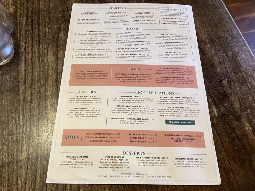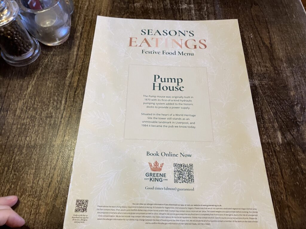 【軽い夕食】Pump House(パブ)(6,180円)