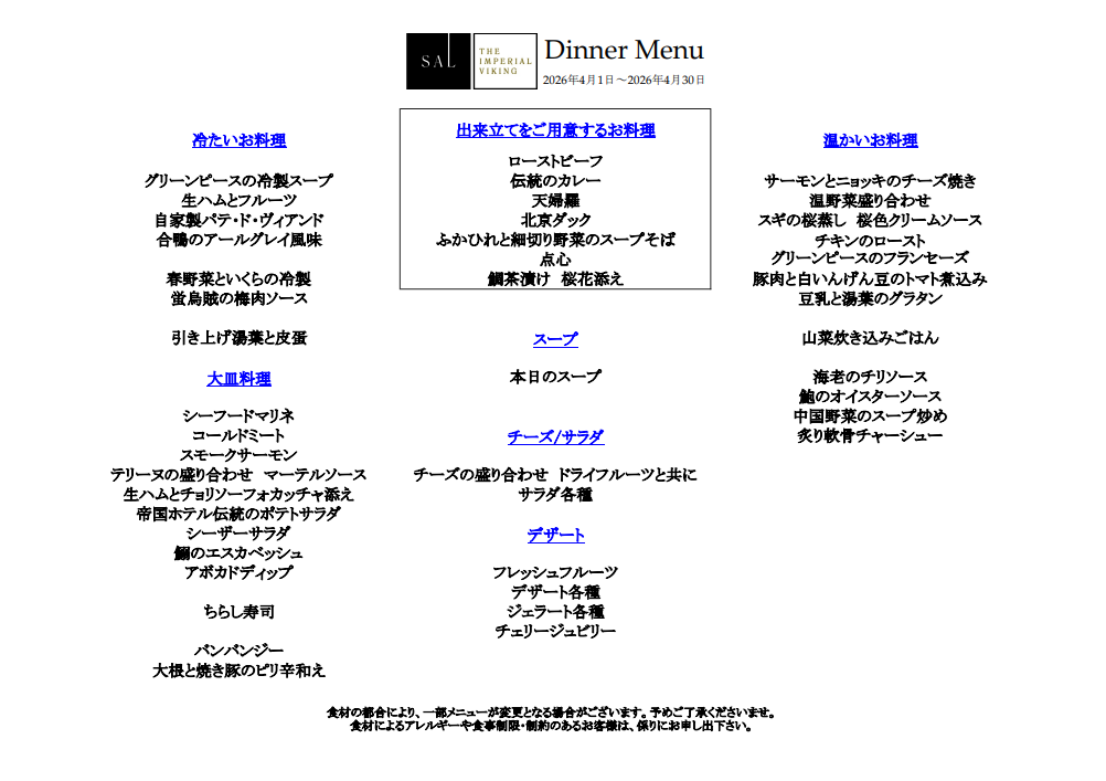 公式ホームページhttps://www.imperialhotel.co.jp/tokyo/restaurant/sal