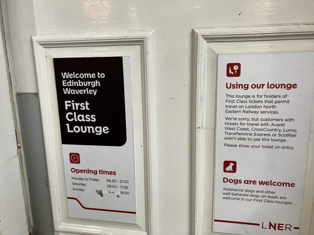 エディンバラ駅ではLNERのファーストクラスラウンジがありました。