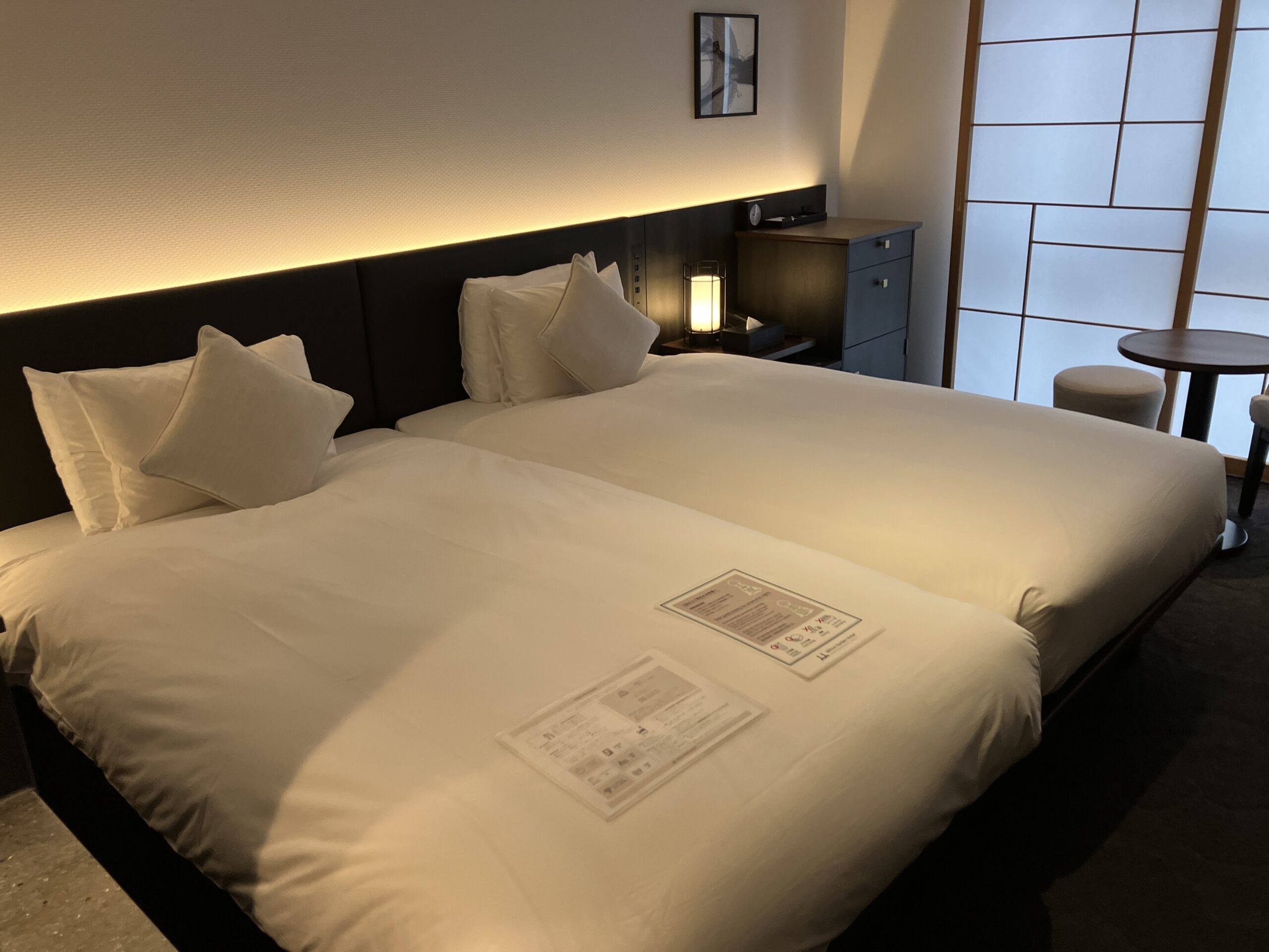 ホテル内は京都らしく、和風のテイストが取り入れられており、ラグジュアリー感もあるシックなホテルで落ち着いた宿泊ができるホテルだと感じました。