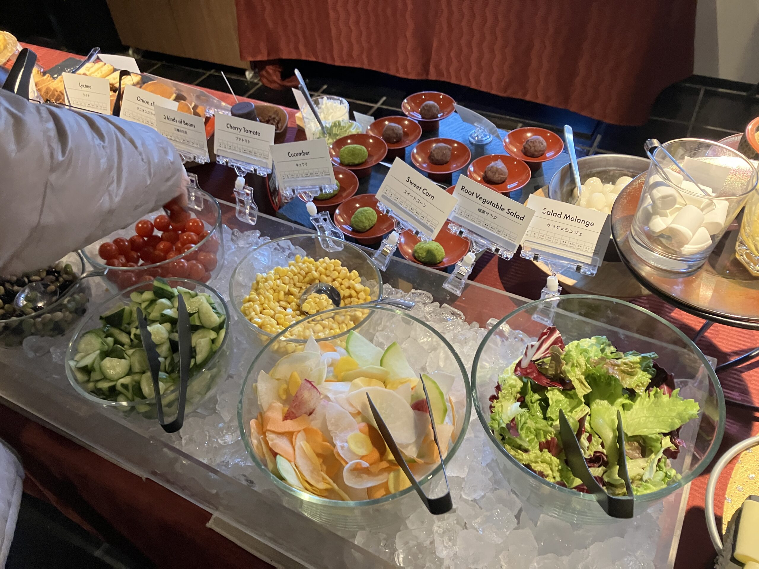 以前はビュッフェは最小限で、注文形式の料理中心だった記憶ですが、注文するメニューはあくまで一品料理だけで、その他はビュッフェ形式で自由に取るという形に変わっていました。