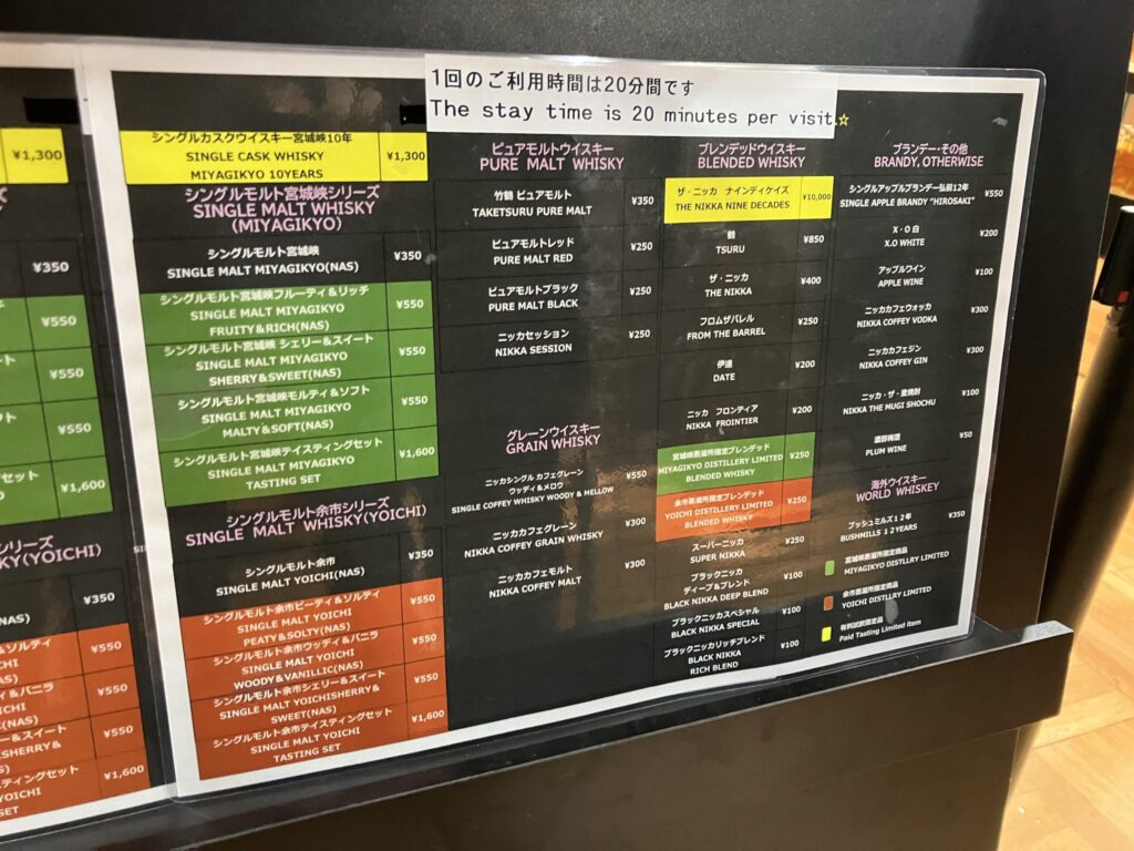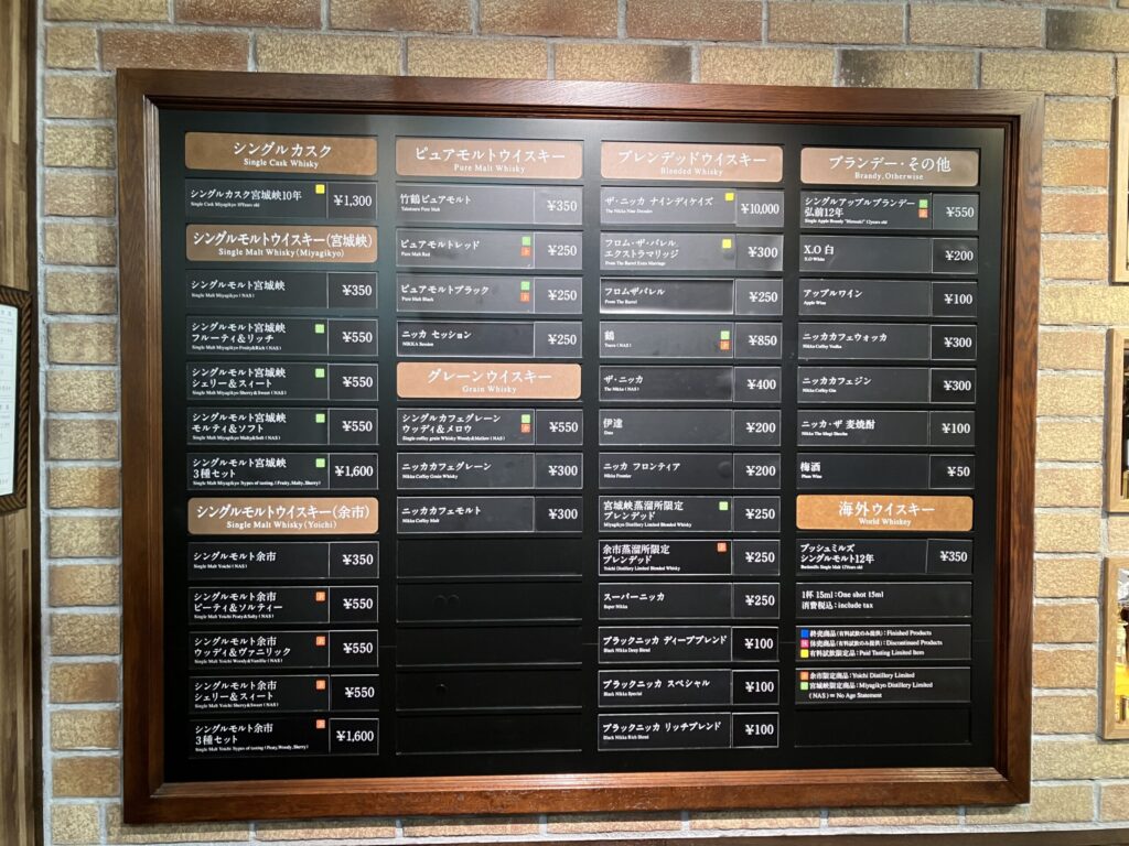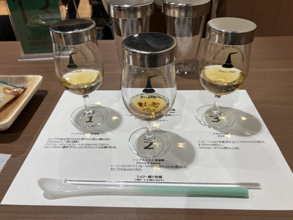 試飲可能な銘柄はそこまで珍しいものではなく、一般的なものではありますが、宮城峡の構成原酒でのウイスキーフロートや、