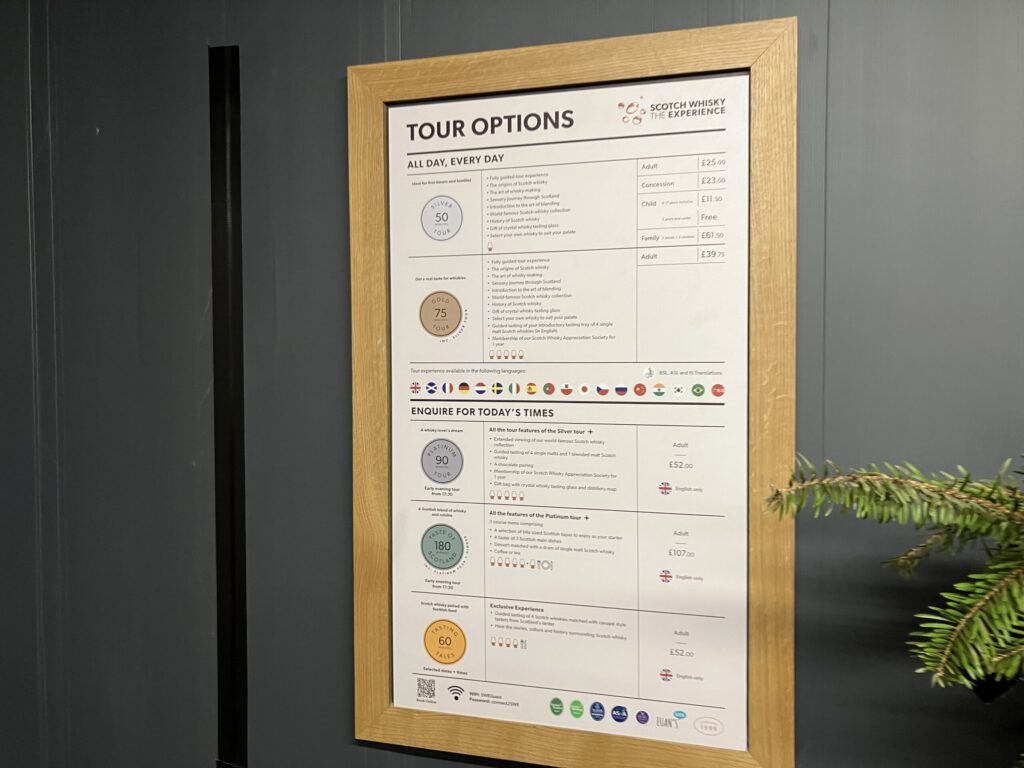 私はゴールドツアーに参加し、ガイドツアー+試飲がついたコースに参加しましたが、試飲できるウイスキーは一般的によく見るそこまで高くないウイスキーなので、ツアーの試飲にはあまり期待しない方が良いと感じました。シルバーツアーでも十分かもしれません。