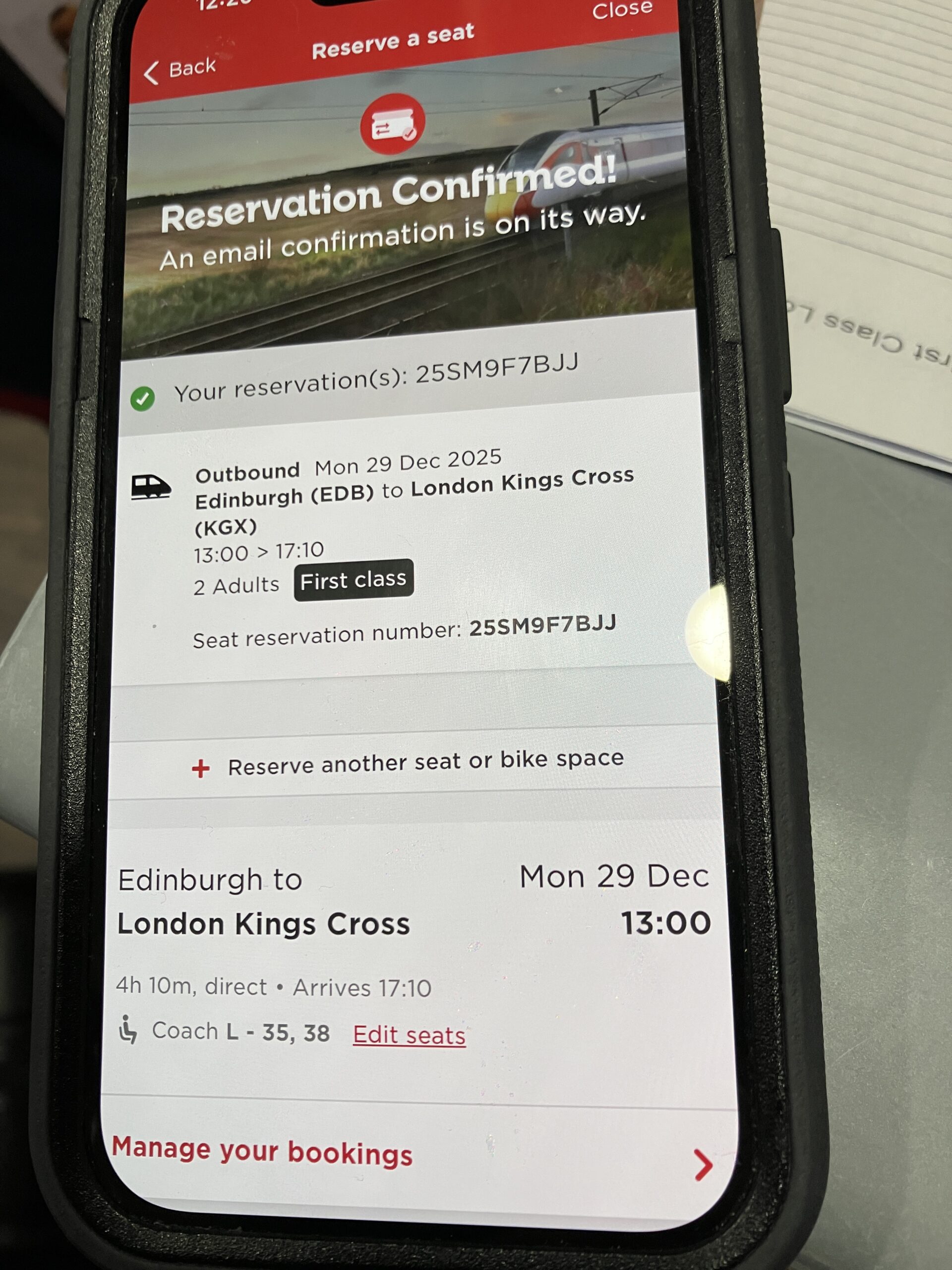 プレストン駅→エディンバラ・ウェイヴァリー駅(TransPennine Expressのファーストクラスラウンジ)