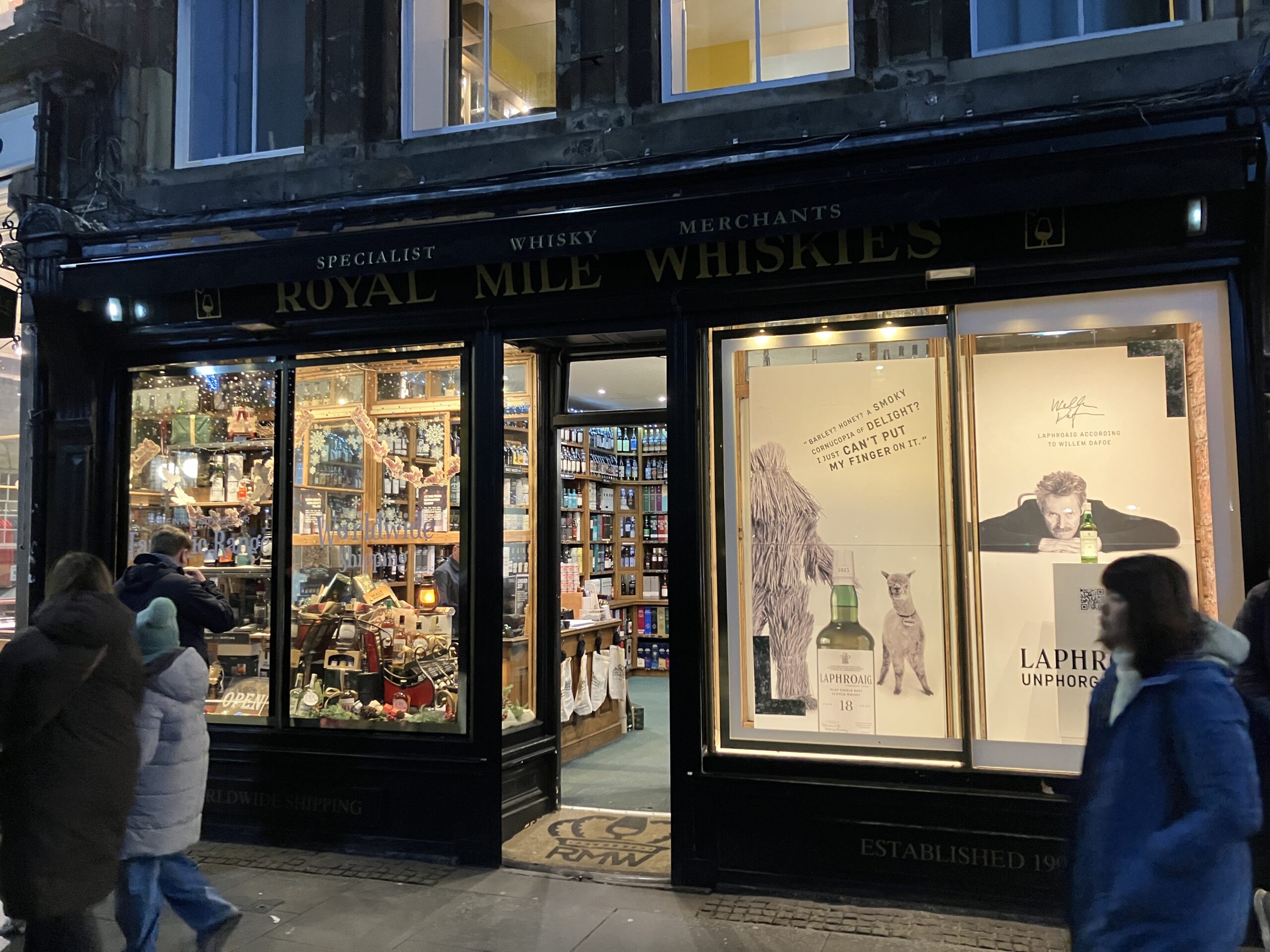 こちらも、エディンバラの目抜き通りである「ロイヤルマイル」沿いにあるウイスキーショップです。