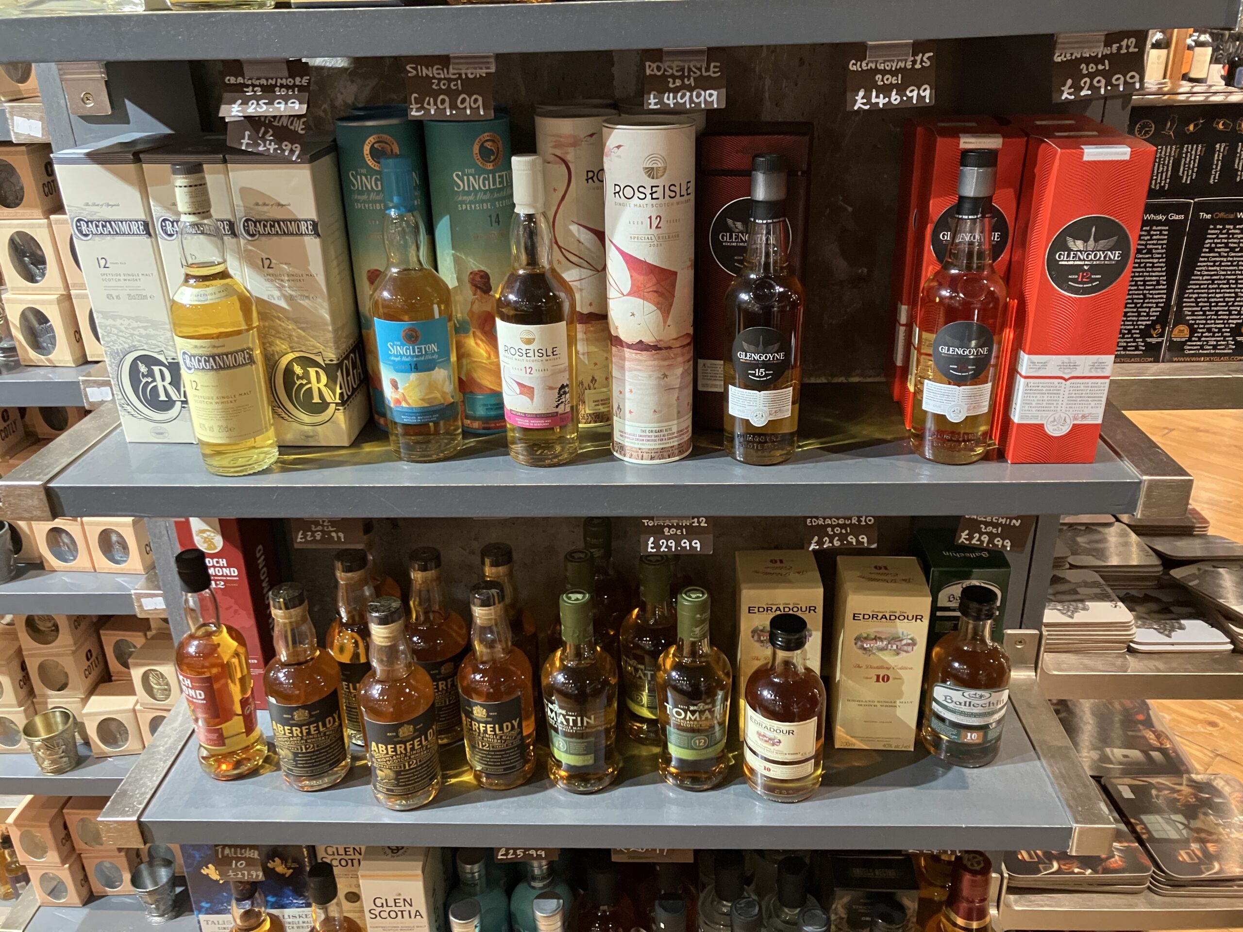 品ぞろえの多くがウイスキーだったので、やはりスコットランドといえばウイスキーなんだと感じました。