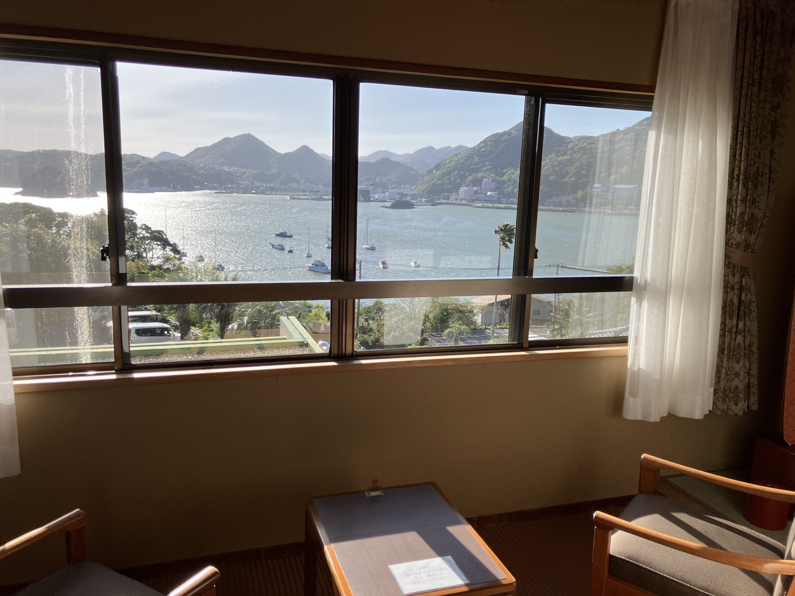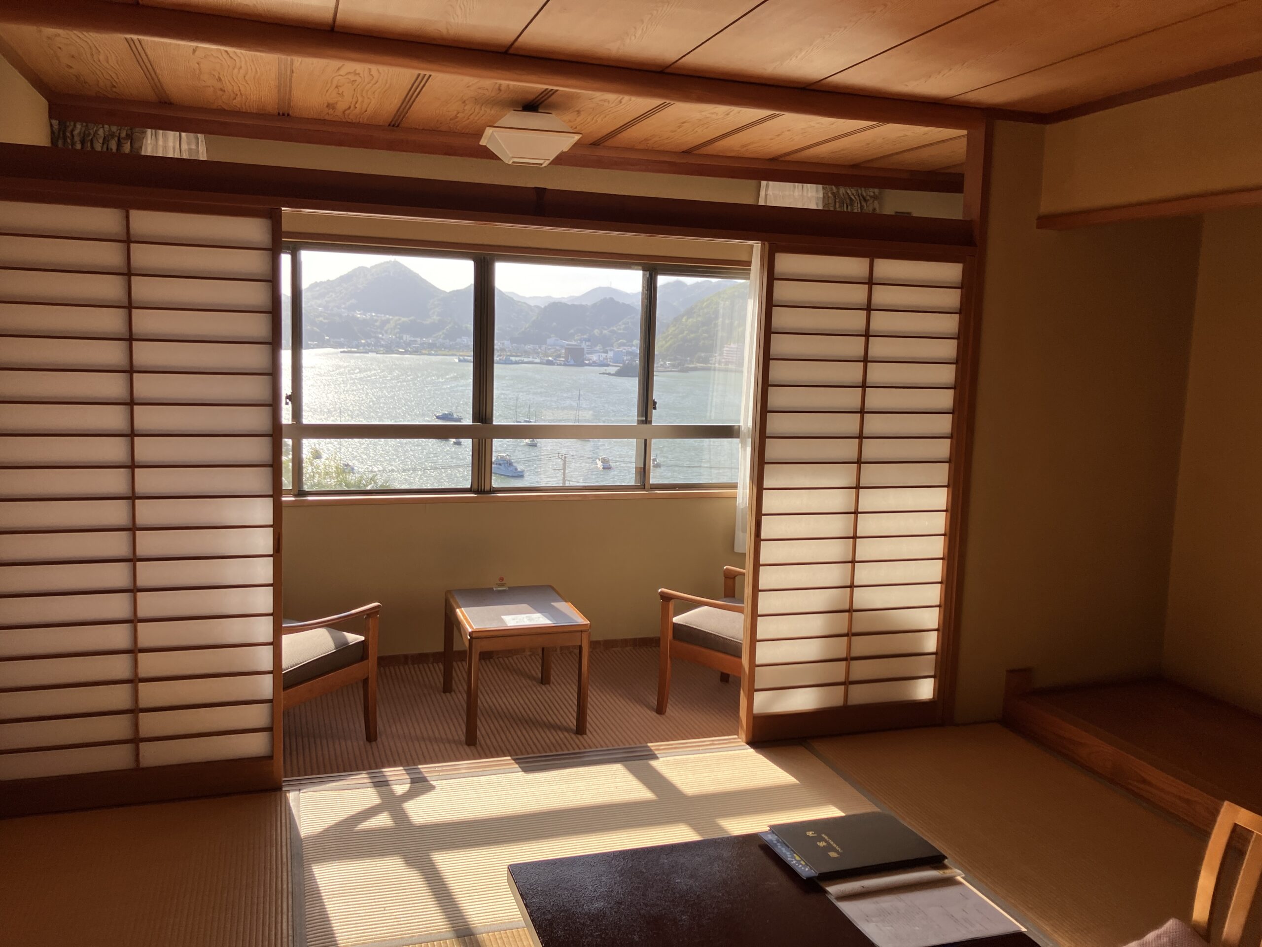 また、おそらく全客室、海側に面していると思われ、景色が朝昼晩ともに内海の穏やかな海を一望でき、非常に良かったです。