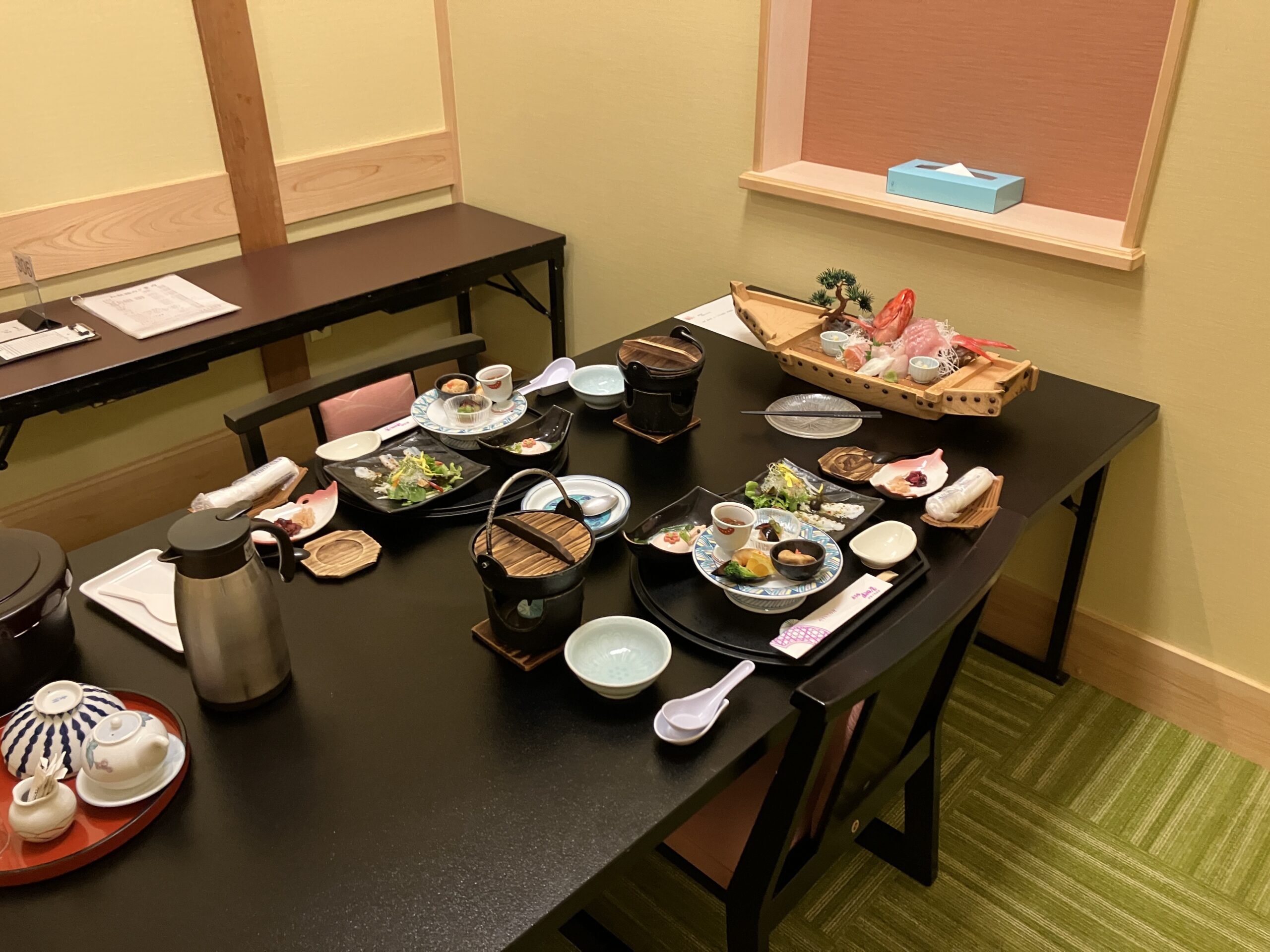 金目鯛丸ごと1匹煮付付きのコースにすると食事場所が大広間から半個室に変わるようでした。